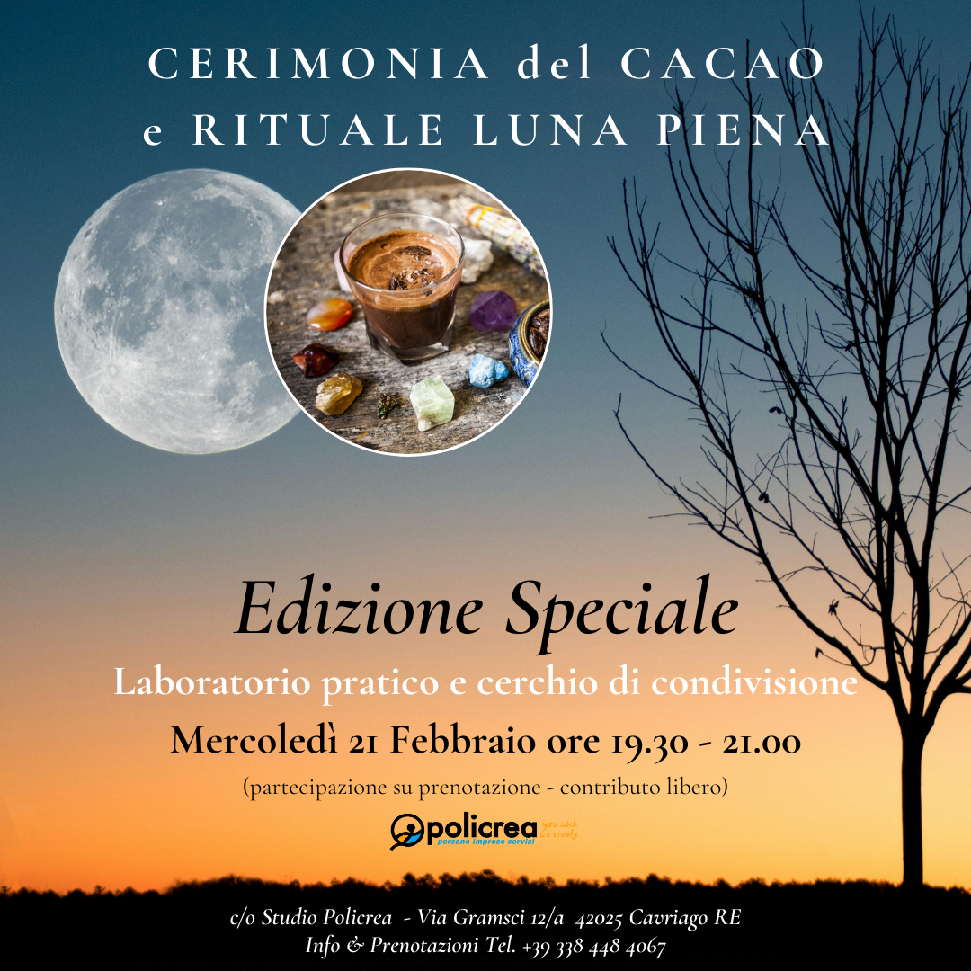 Edizione speciale Durante questa Cerimonia del Cacao sperimenteremo: ✨Come stabilire intenzioni e manifestare i nostri sogni/desideri ✨Meditare e condividere apertamente in un gruppo protetto ✨Esplorare il lavoro sul respiro/pranayama ✨Bere cacao medicinale/cucinato secondo i riti del sud-america ✨Ascoltare e produrre suoni di guarigione e meditazione IMPORTANTE - cercate di non bere caffeina durante il giorno,  […]
