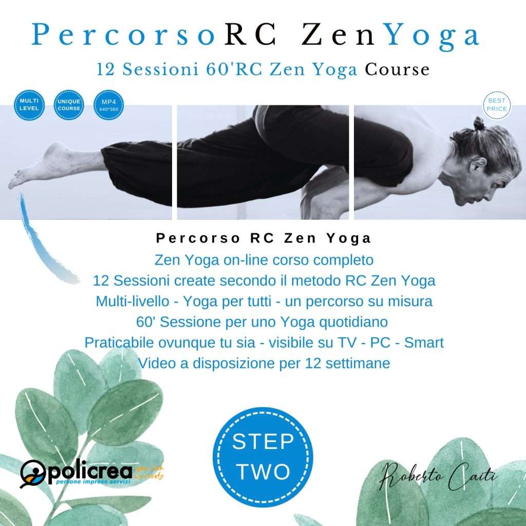 Benvenuti a tutti coloro che vogliono sperimentare il mio Yoga Zen RC, ho provveduto a fornire una maggiore fruibilità delle mie lezioni, dando l’opportunità a chi non può partecipare alle lezioni in presenza di seguire una pratica quotidiana. Sono video realizzati in buona risoluzione con tecniche professionali, le lezioni sono bilanciate per un lavoro quotidiano a ed un percorso di yoga a tutti gli effetti seguendo il ritmo delle stagioni, il format di 60 minuti circa permetter di praticare negli spazi a disposizione ed ovunque voi vi troviate, più volte a settimana o per chi vuole più volte al giorno senza controindicazioni. Possibilità:  1°Step (12 sessioni circa 3 mesi) – 2°Step (12 sessioni circa 3 mesi) – 3°Step (14 sessioni circa 3 mesi e mezzo) Si consiglia di iniziare il percorso dal primo step e a seguire gli altri. La parola Yoga deriva dalla radice sanscrita “YUG” che significa unire, legare assieme, soggiogare, dirigere e concentrare l’attenzione, usare ed applicare. Lo yoga è una scienza pragmatica, senza tempo, sviluppatasi nel corso di migliaia di anni, che si occupa del benessere fisico, morale, mentale, e spirituale dell’uomo nel suo insieme. Come un diamante ben tagliato presenta molte sfaccettature, ognuna delle quali riflette un diverso tono di luce,  così la parola Yoga, con ciascuna sfaccettatura, riflette un significato e rivela aspetti differenti dell’intera gamma dello sforzo umano diretto al raggiungimento della pace interiore e della felicità. La pratica dello Yoga provoca inizialmente una sensazione di misura e di equilibrio; applicata al nostro corpo ci insegna come farlo funzionare, traendone massima forza ed armonia. Ringraziandovi vi auguro Buona Pratica. Gassho Roberto